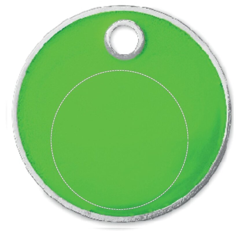 Přívěsek se žetonem velikosti 1EUR do košíku. Jedná se o kov s imitací smaltu na přední straně.