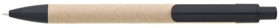 Propiska z recyklovaného papíru a doplňky s podílem slámy. Rozměr 140 x 10 mm. Modrá náplň.