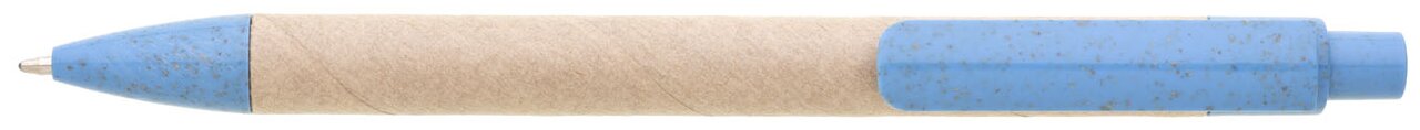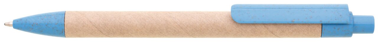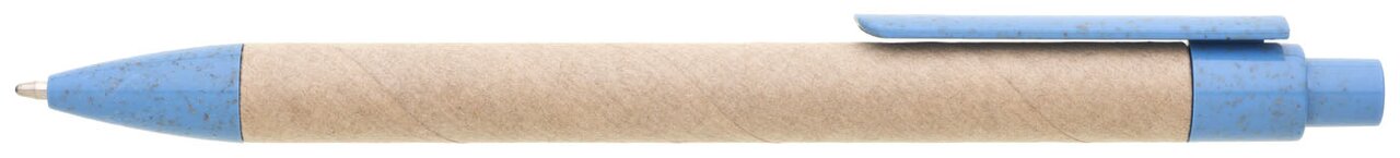 Propiska z recyklovaného papíru a doplňky s podílem slámy. Rozměr 140 x 10 mm. Modrá náplň.