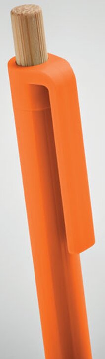 Propiska z recyklovaného ABS s bambusovým tlačítkem. Modrý inkoust.