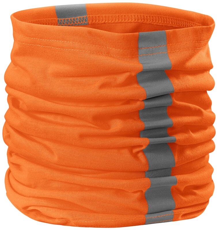 Fluorescenční šátek s retroreflexními pruhy. Dolní okraje prošité na obou stranách. Po straně šev. Víceúčelové užití (možnosti nošení jsou zobrazeny na balení). Vhodný pro potisk a výšivku. Single Jersey, 100 % polyester, retroreflexní pruhy.