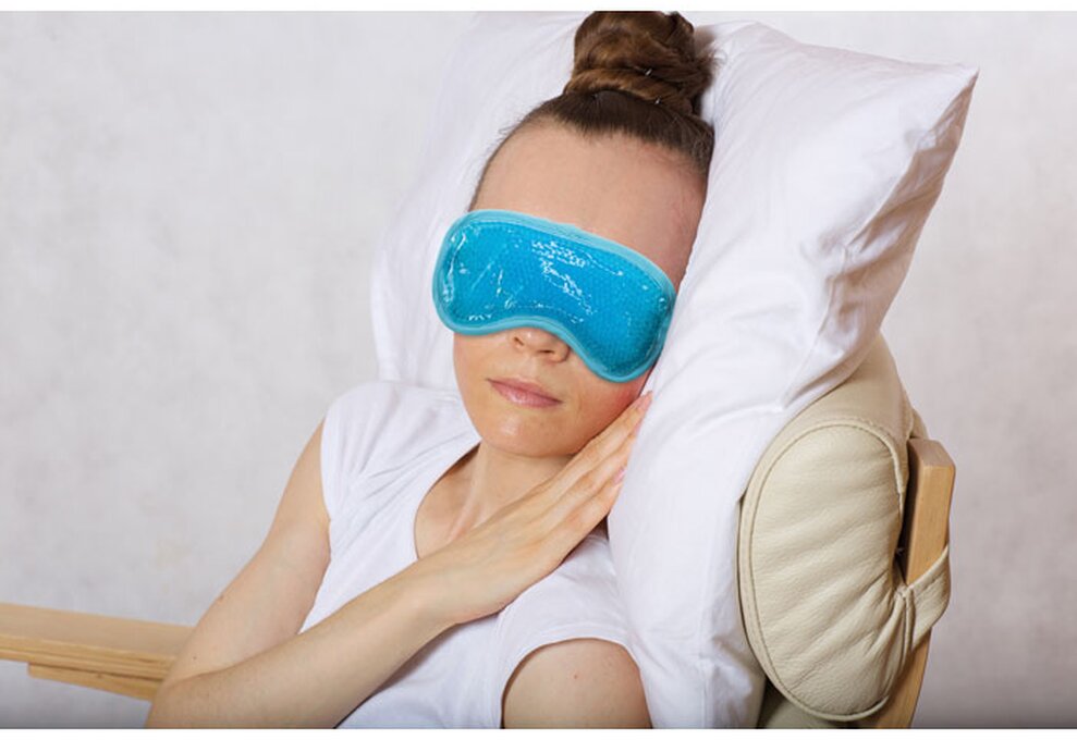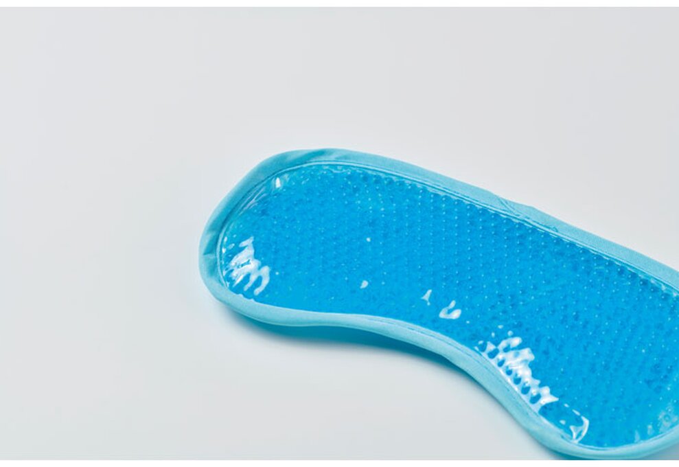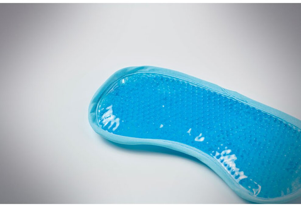 Oboustranná chladicí maska na oči plněná gelovými kuličkami. Ve stahovacím pouzdru z polyesteru 190T.