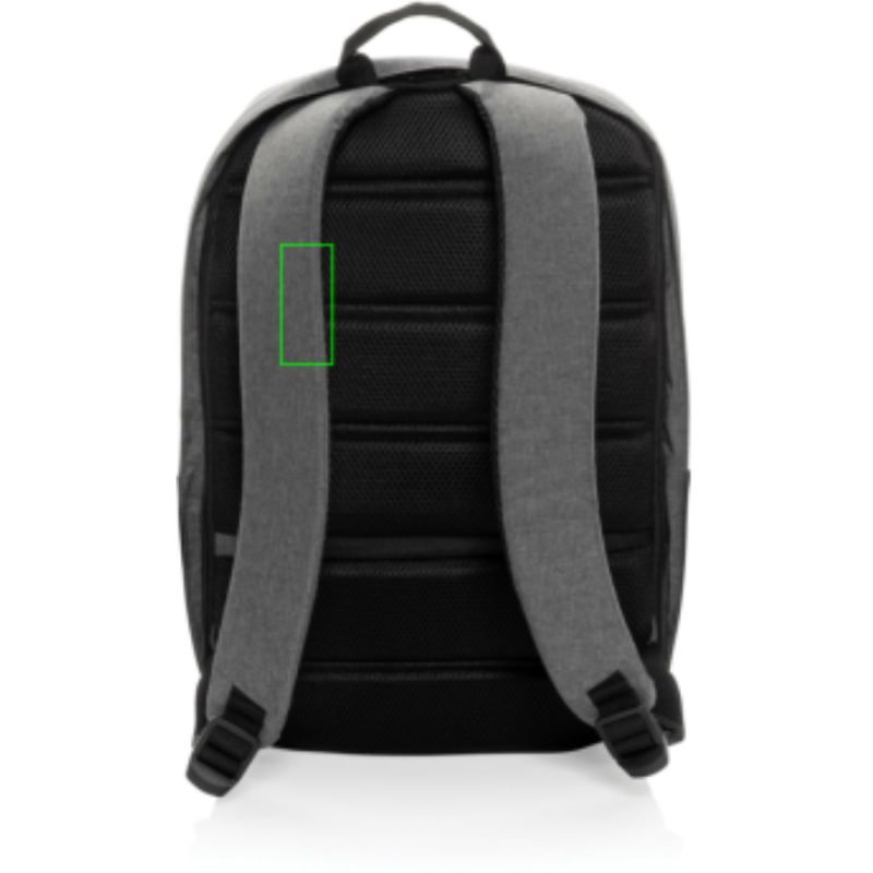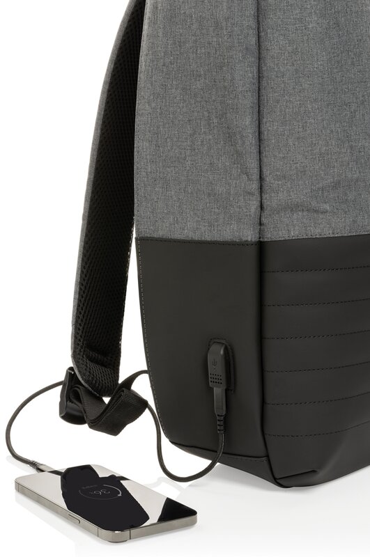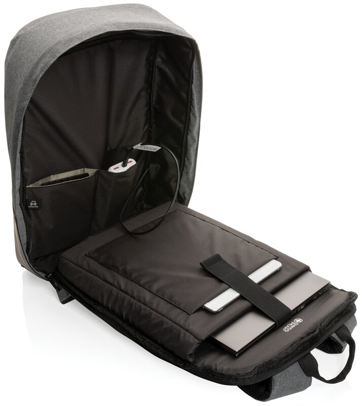 Batoh Swiss Peak s nedobytným zapínáním skrytým v zadní části zajistí bezpečnost všech uložených cenností. Obsahuje oddíl na 15,6" notebook a tablet nacházející se v přední části, RFID kapsy pro uložení dokladů, integrovaný USB port pro snadné nabíjení telefonu z powerbanky, kterou lze uložit uvnitř batohu a skrytou kapsu na zadní části. Vyrobeno z recyklovaného polyesteru AWARE™. Na výrobu bylo využito 20,8 500ml PET lahví a bylo uspořeno 12,4 litrů vody. Z výtěžku každého prodaného kusu je navíc přispěno 2 % na podporu iniciativy Water.org.