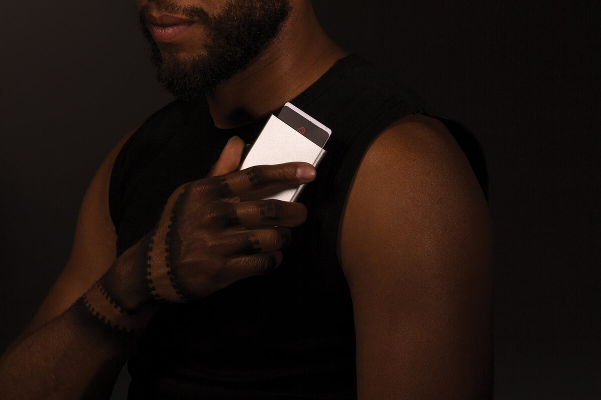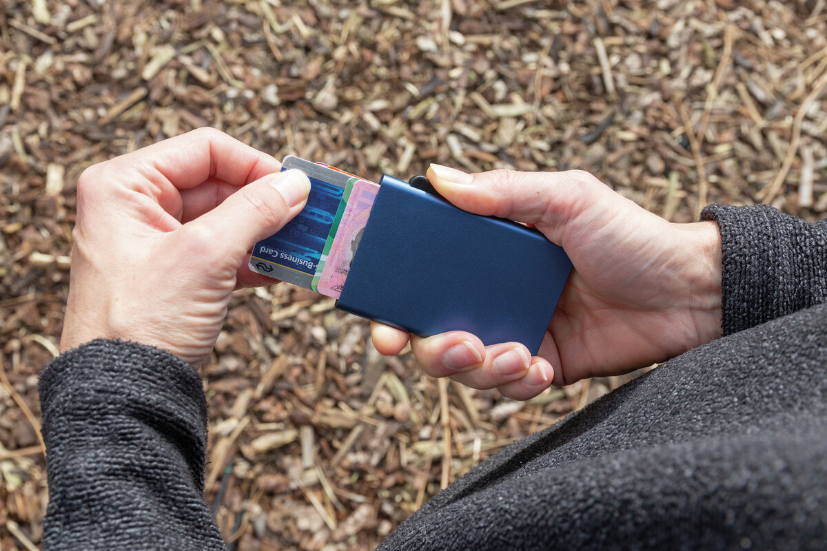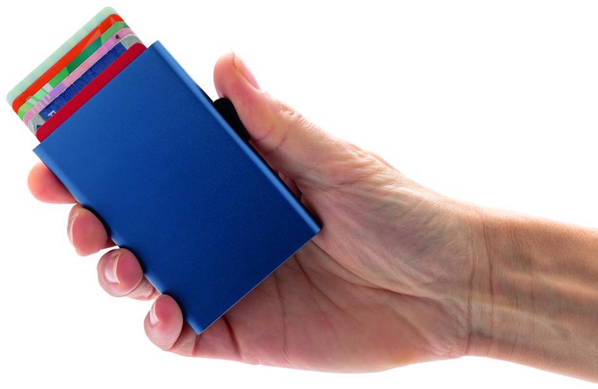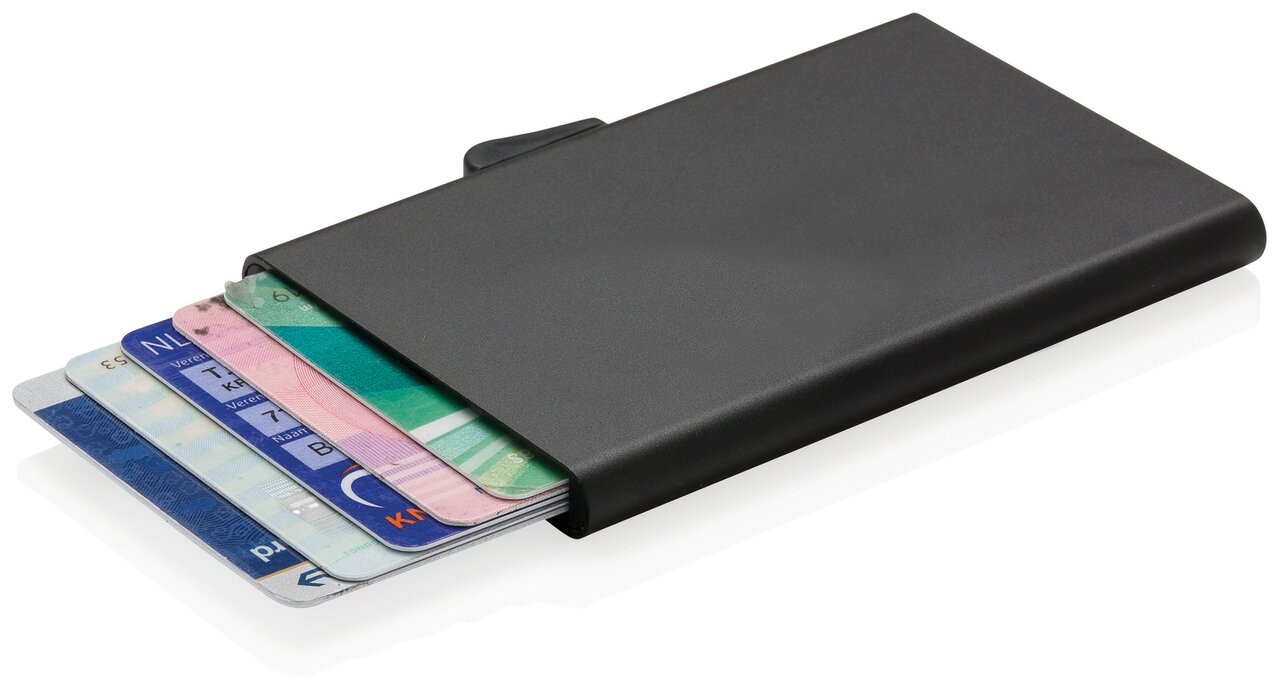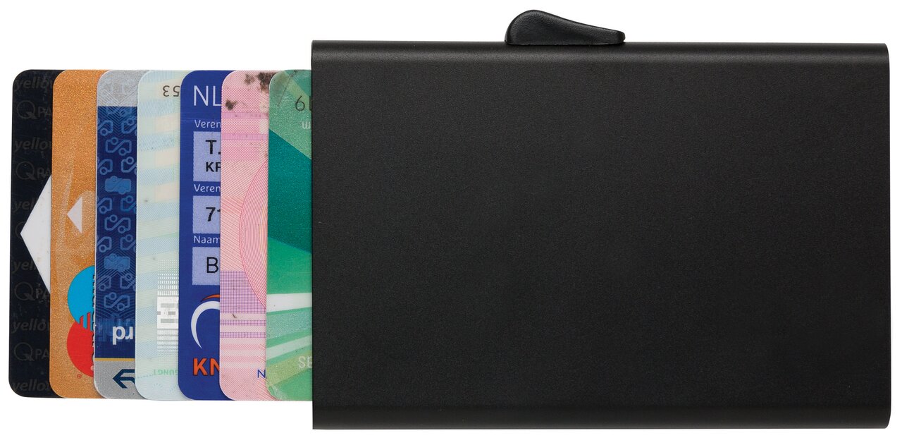 Pevné hliníkové pouzdro chrání karty před elektronickými kapesními krádežemi. Díky pouzdru se karty neohýbají nebo nelámají. Pojme až 7 karet nebo 5 embosovaných karet. Snadno ovladatelný jezdec karty postupně vytlačí kartu nahoru.