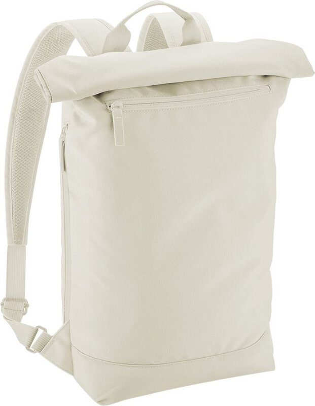 Kompaktní voděodolný rolovací batoh s boční kapsou vhodnou pro skládací deštník, přední kapsou na zip, polstrovanými ramenními popruhy a magnetickým zapínáním.