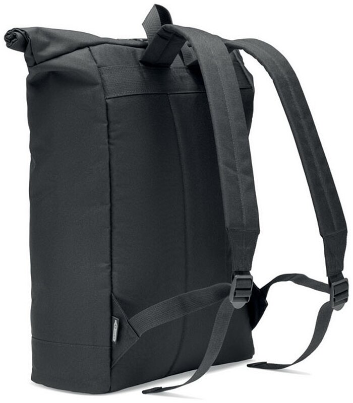 Rolovací batoh NAPA s polstrovanými zády a zpevněným dnem. Přední kapsa na zip. Materiál: polyesteru 600D RPET, podšívka je z RPET 210D.