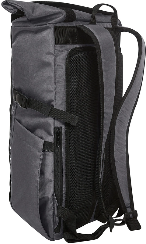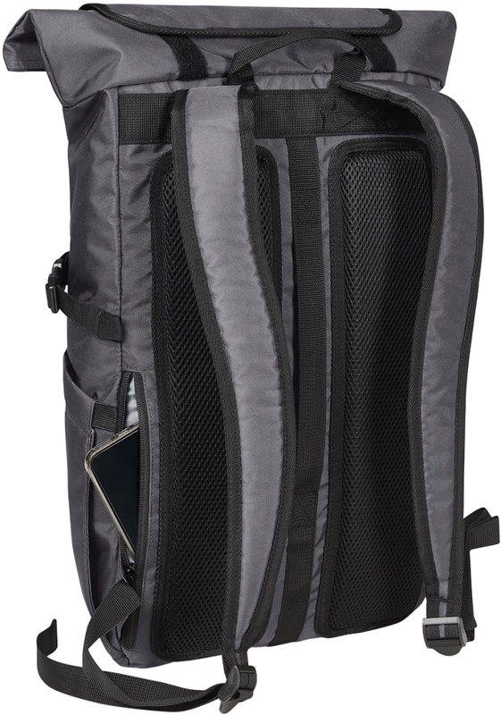 Všestranný batoh s inovativním zvětšením objemu, vnější materiál rPET, prostorná hlavní přihrádka na zip, plochá zasouvací přihrádka uvnitř, velká přední kapsa na zip, funkční poutko s elastickou šňůrkou, dvě boční zasouvací přihrádky např. na lahve s pitím, upevňovací popruhy, zadní samostatně přístupná přihrádka na notebook s velurovou podšívkou, polstrovaný nosný systém, skrytá zadní kapsa na zip, polstrované dno, držadla na zadní straně použitelná také jako poutka pro upevnění na tyčoví kufru, držadlo na přenášení
