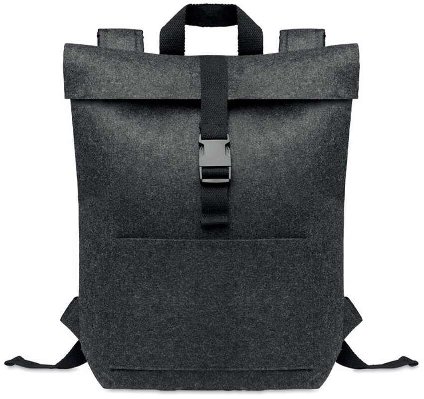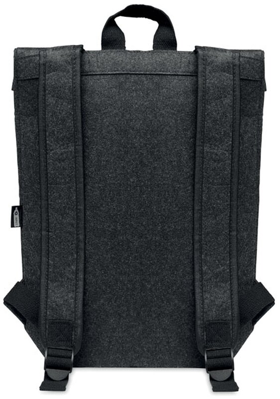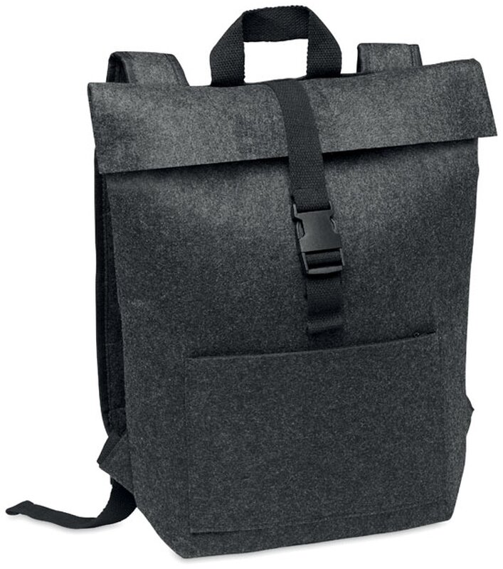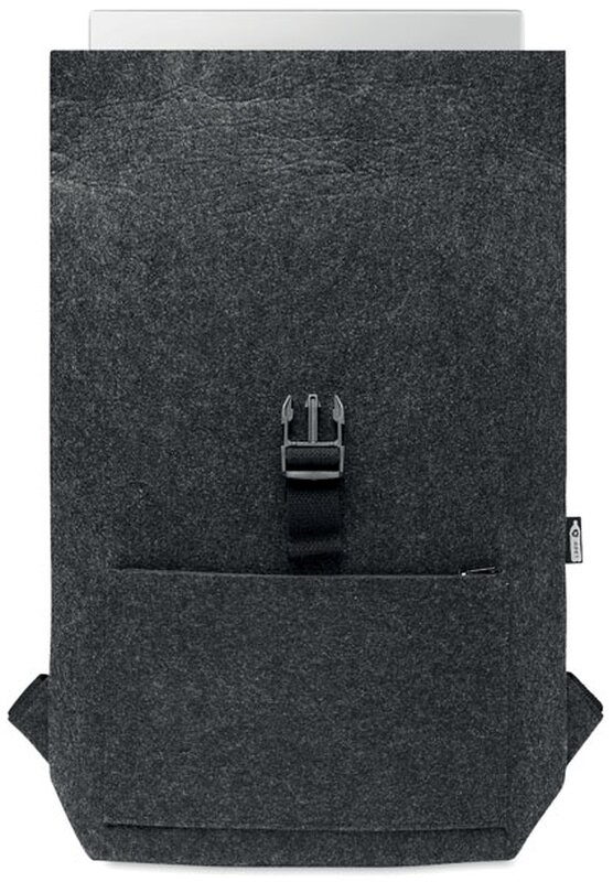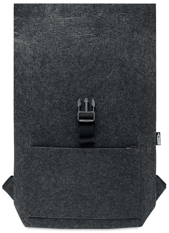 Batoh z plsti RPET s bavlněným zavíracím popruhem a kapsou na zip na přední straně. Včetně přihrádky na notebook.