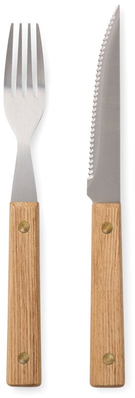 Sada je vyrobena z kombinace vysoce kvalitní nerezové oceli a jasanového dřeva s certifikací FSC®, které zaručuje odpovědný původ použitého materiálu. V praktickém balení najdete čtyři ostré steakové nože a čtyři robustní vidličky.