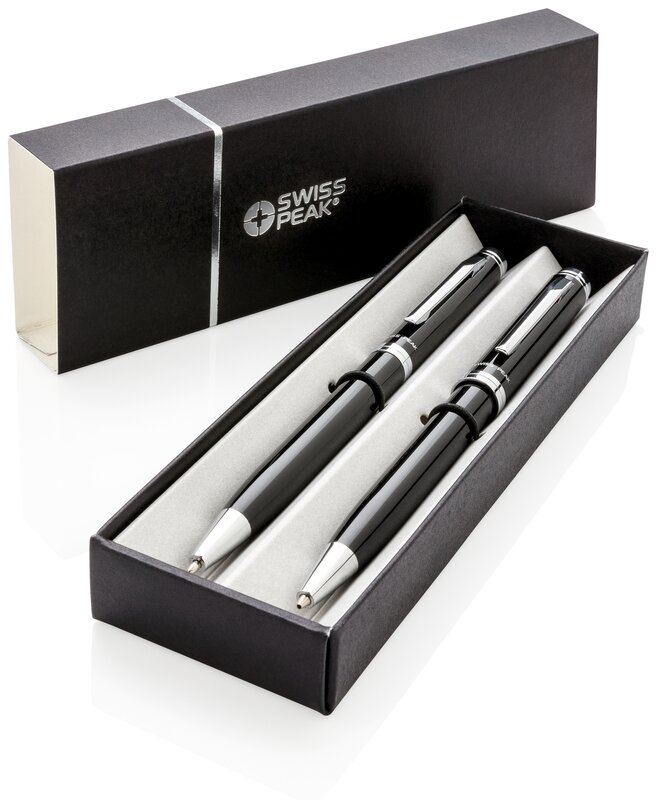 Set kuličkového pera a mechanické tužky kombinuje obrovskou kvalitu s elegancí. Baleno s náplní s německým inkoustem pro psaní více než 1 200m textu a 3 tuhami 0,7mm. Dodáváno v dárkovém balení Swiss Peak.