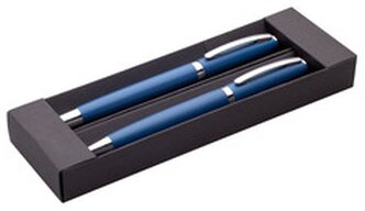 Působivá dárková sada s kovovou propiskou a ladícím rollerem v dárkové černé krabičce.