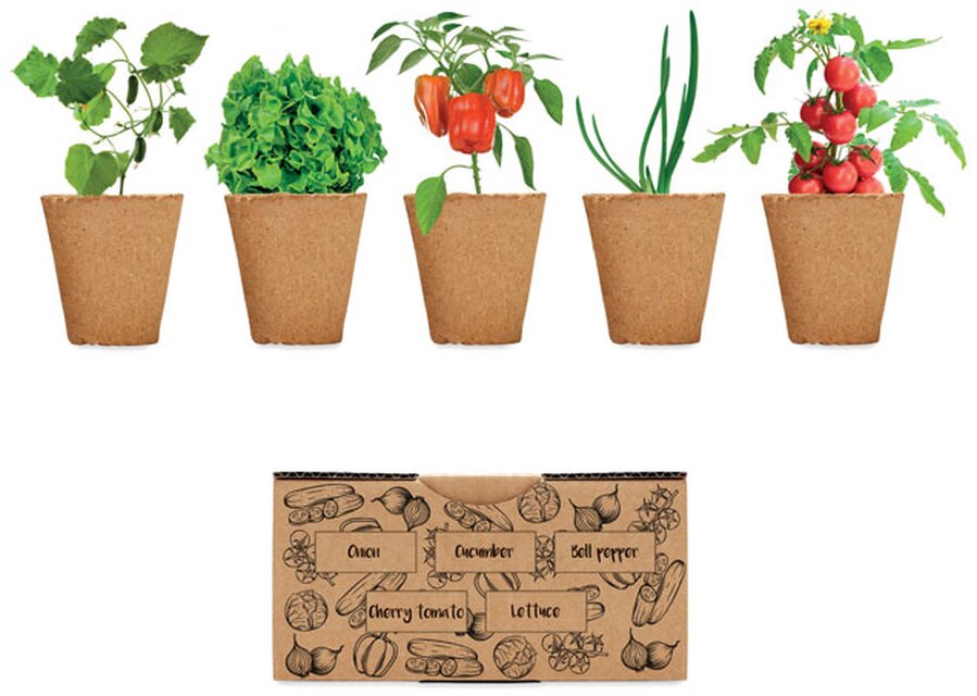 Sada na pěstování zeleniny. Obsahuje semena okurky, papriky, cherry rajčátek, salátu a cibule. Vyrobeno v EU.