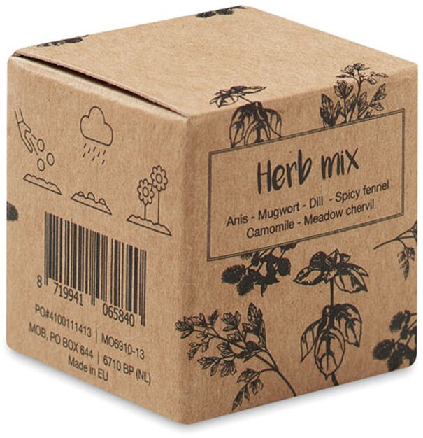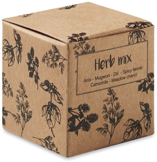 Sada pro pěstování bylinek BOMBI. Obsahuje semínka anýzu, pelyňku, kopru, fenyklu, heřmánku a petržele. Dodává se v přírodní kartonové krabičce. Vyrobeno v EU.