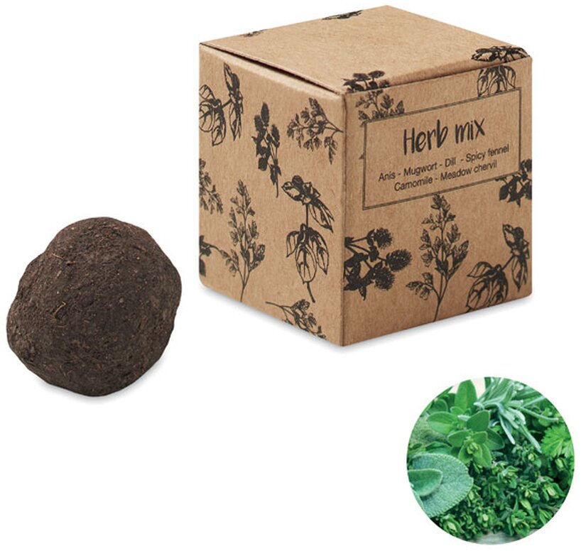 Sada pro pěstování bylinek BOMBI. Obsahuje semínka anýzu, pelyňku, kopru, fenyklu, heřmánku a petržele. Dodává se v přírodní kartonové krabičce. Vyrobeno v EU.