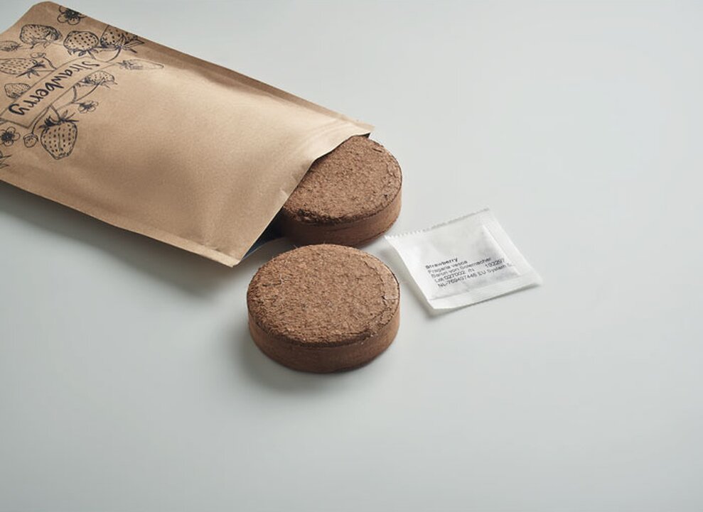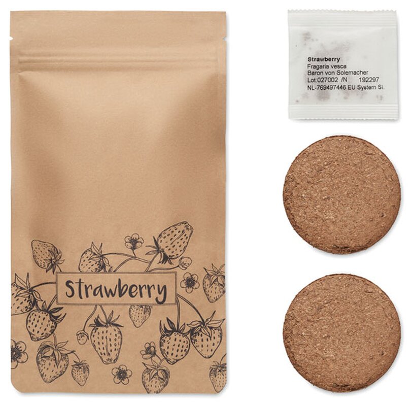 Sada pro pěstování jahod FRESA KIT v papírové obálce, včetně zahradního kompostu. Vyrobeno v EU.