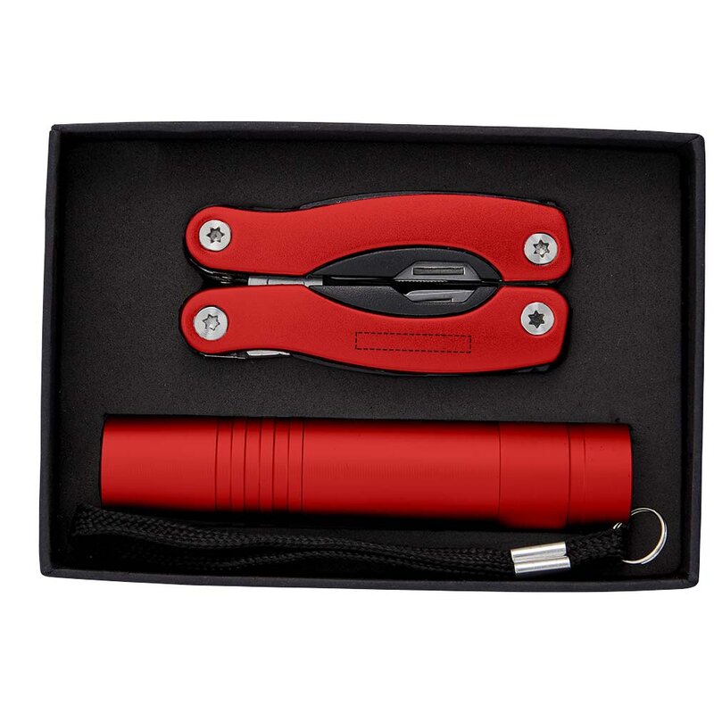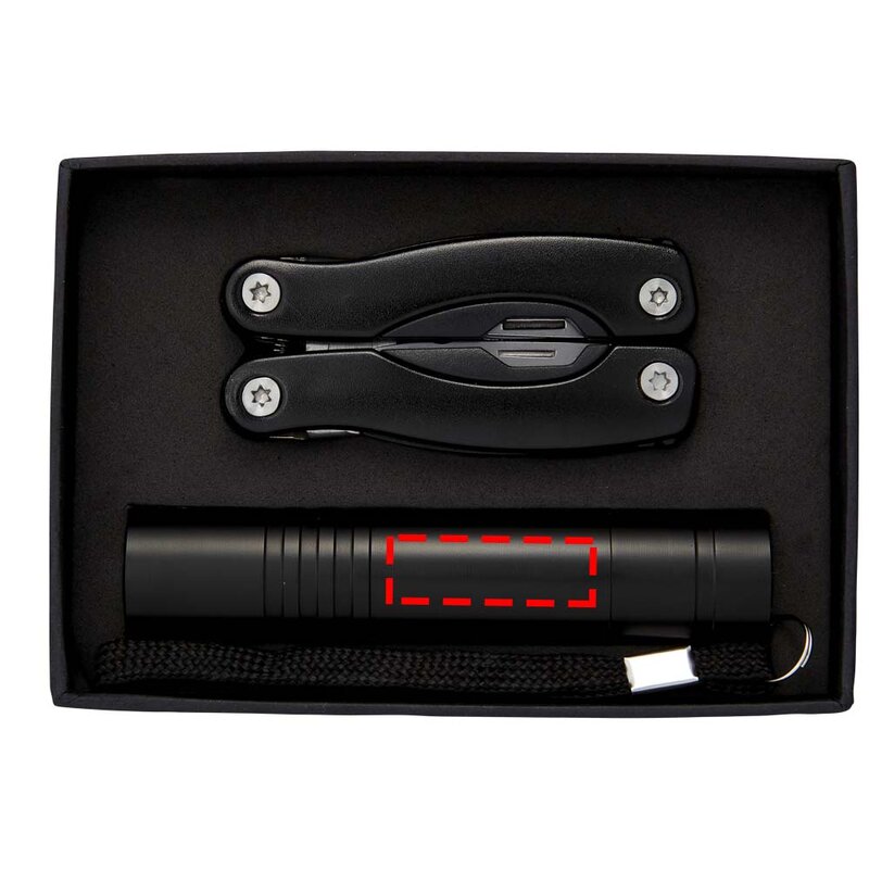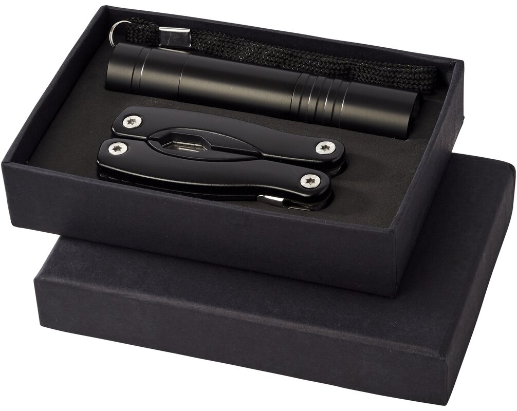 Multifunkční nůž a baterka SCOUT. Mini multifunkční nástroj s 11 funkcemi a LED blikačkou v černé kartonové dárkové krabici s vložkou EVA. Baterie jsou součástí balení. Materiál : hliník.