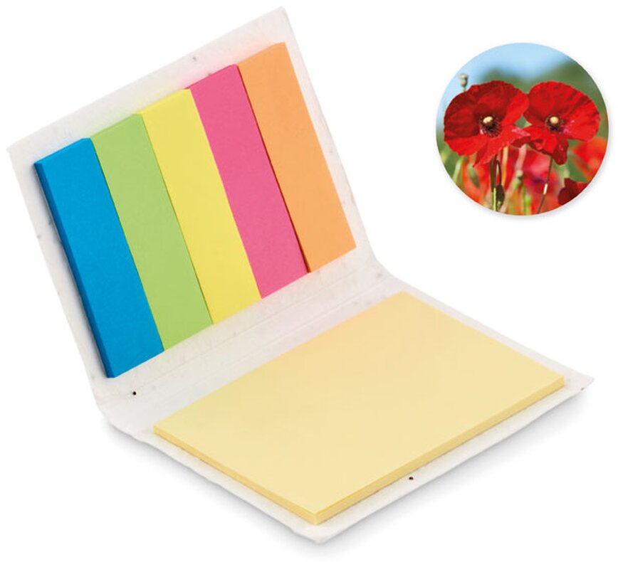 Sada poznámkových lístečků VISON SEED s obalem obsahující semínka máku. Sada obsahuje 1 velký žlutý poznámkový blok a 5 ks malých barevných oddělovačů. Po použití jen zasadíte obal do půdy a necháte semínka vyrůst.