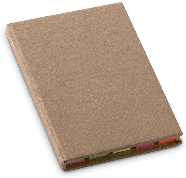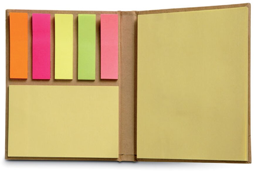 Sada lepících bločků v recyklovaném kartonovém obalu. Obsahuje 5 různobarevných lepicích bločků po 25 listech, jeden 25 stránkový a jeden 50 stránkový blok. Minimální náklad pro realizaci s potiskem je 30 ks.