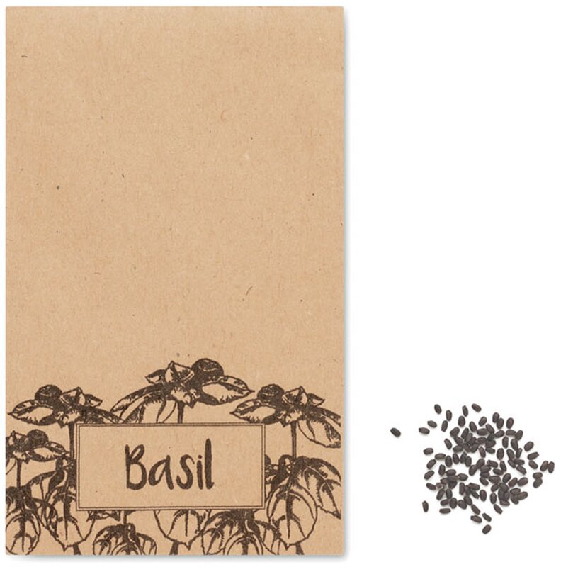 Semínka bazalky BASILOP v kraftové obálce. Vyrobeno v EU.