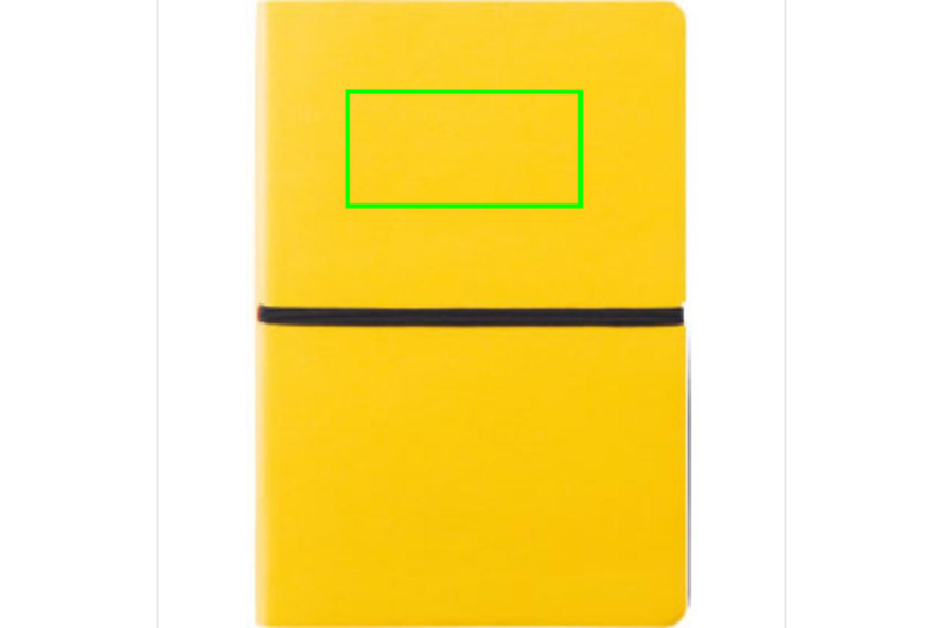 Součástí je vodorovná černá gumička, která drží blok zavřený.