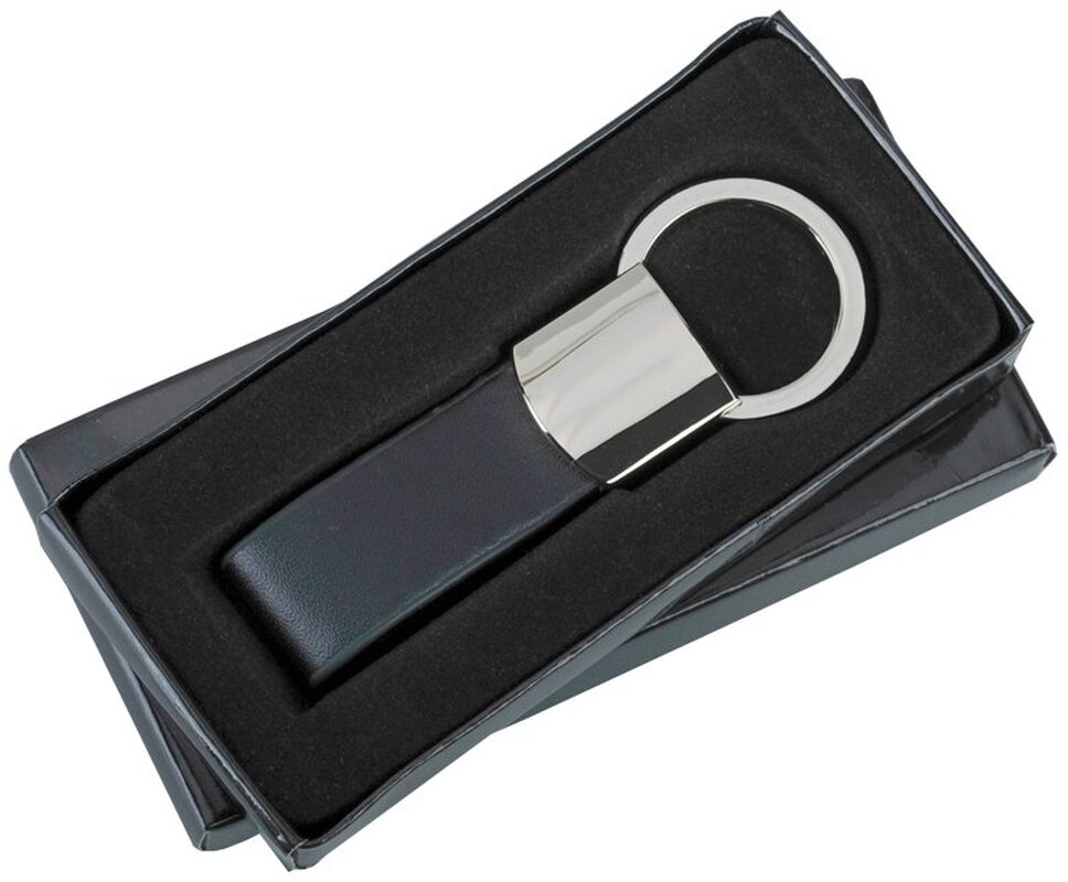 Přívěsek na klíče z kovu a PU v černé dárkové krabičce.