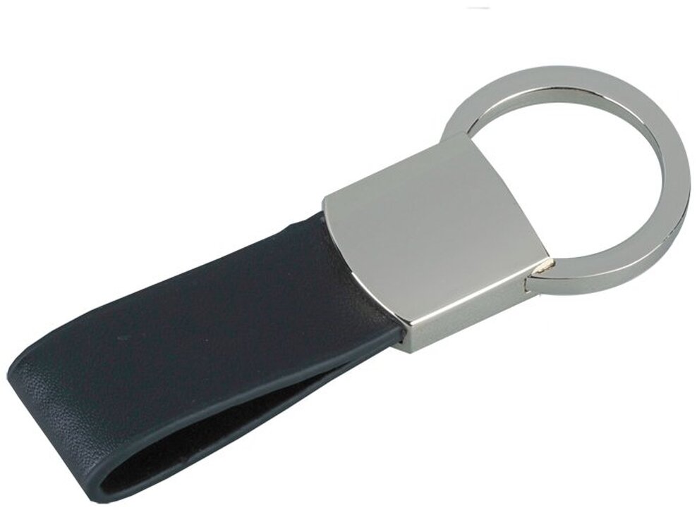 Přívěsek na klíče z kovu a PU v černé dárkové krabičce.