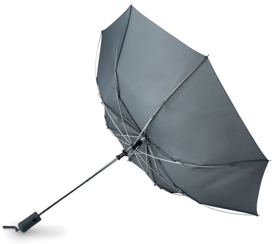 Automatický deštník ze 190T materiálu má ocelovou konstrukci, černé ABS pogumované držadlo a 2 skládací sekce. Deštník má velikost 21 palců, součástí deštníku je pouzdro.