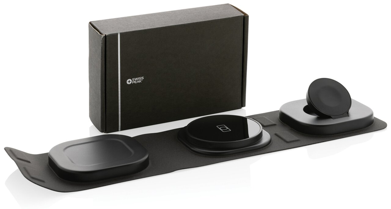 Skládací bezdrátová nabíječka 3v1 Swiss Peak 15W Šedý konvoj-černá 037.335