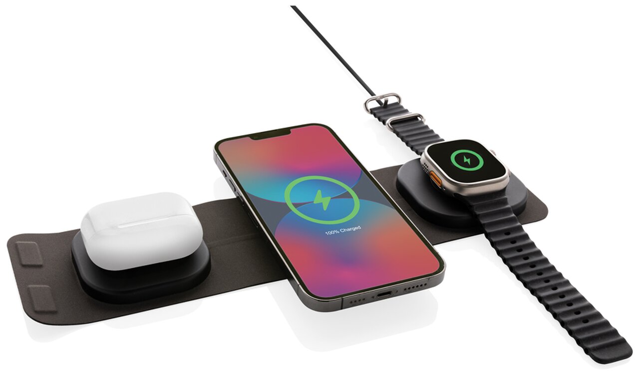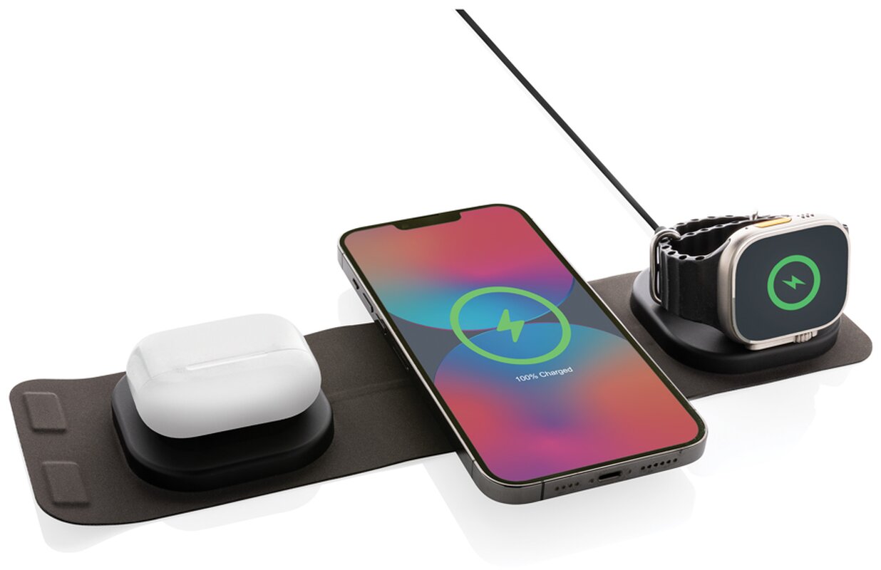 Luxusní, prémiová skládací bezdrátová nabíječka 3 v 1 ideální na cesty.