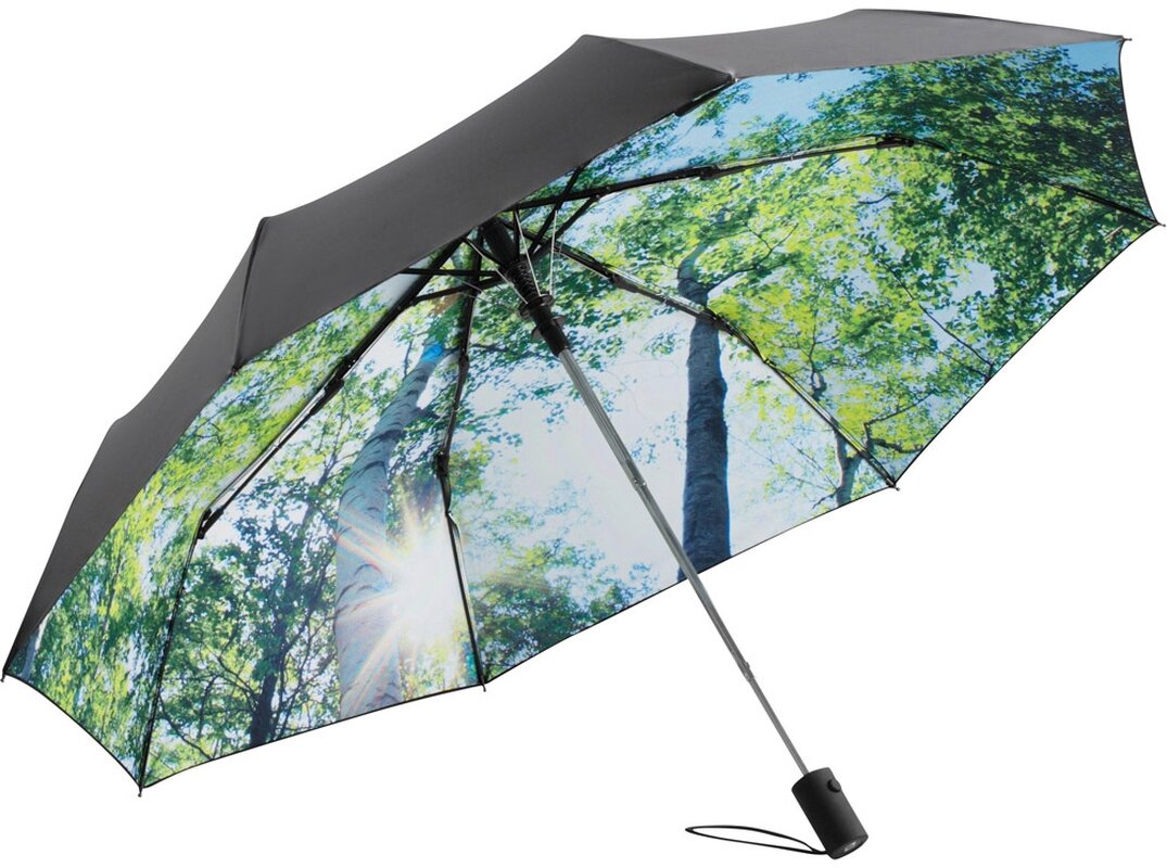 Skládací Deštník s vnitřním celoplošným tiskem - AC mini FARE®-Nature 5593 100 cm Černo-motiv lesa 036.421