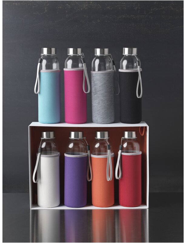 Jednostěnná skleněná lahev se šroubovacím víčkem. Víko je vybaveno popruhem pro snadné přenášení, stejně jako neoprenovým pouzdrem proti rozbití lahve. Doporučeno pro studené nápoje. Nepoužívejte v mikrovlnné troubě. Objem je 500 ml. Dodáváno v dárkové krabičce.