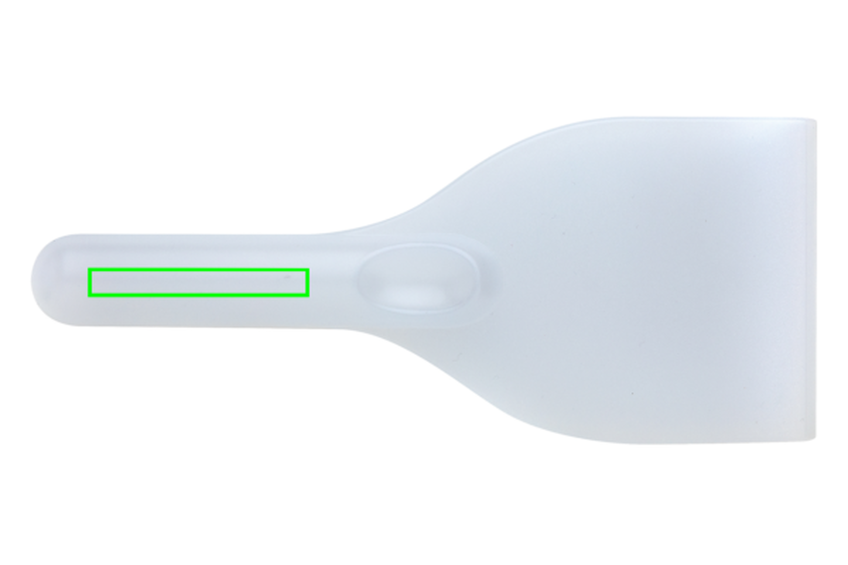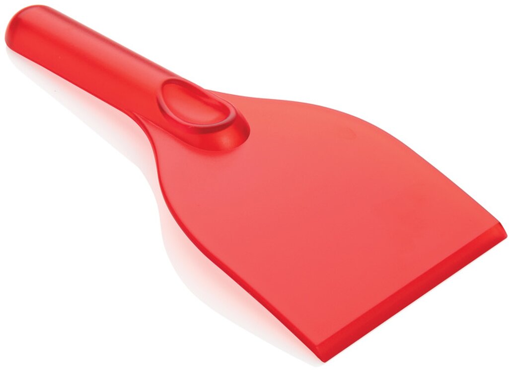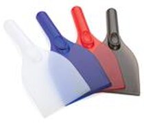 Praktická škrabka na led z částečně průhledného PS. Koncová tloušťka škrabky: 0.6cm.
