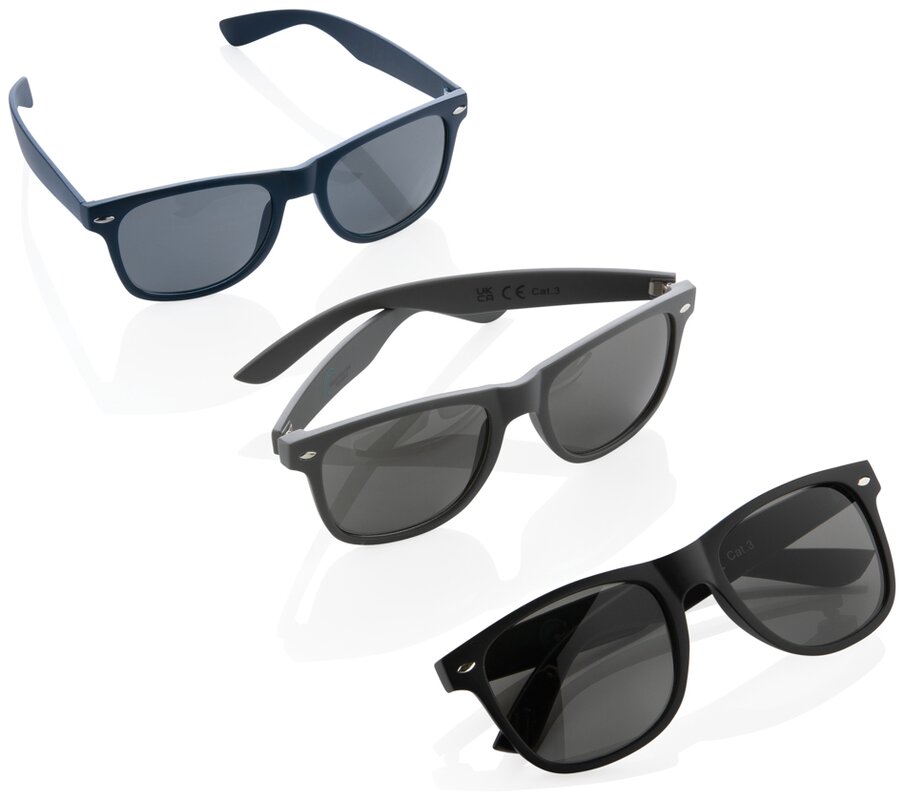 Vysoce kvalitní sluneční brýle z GRS certifikovaného recyklovaného plastu. Certifikace zaručuje skutečné obsažení recyklátu. Konstrukce brýlí je ze 100 % recyklovaného PC plastu, zatmavená sklíčka z akrylu odpovídající UV 400 a CAT 3. Podíl použitého recyklovaného materiálu vzhledem k celkové váze produktu: 65 %. Baleno v kraftové dárkové krabičce.