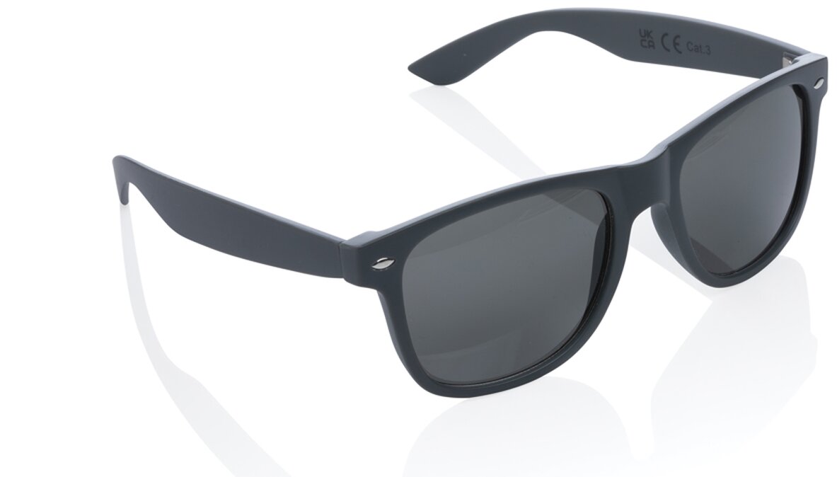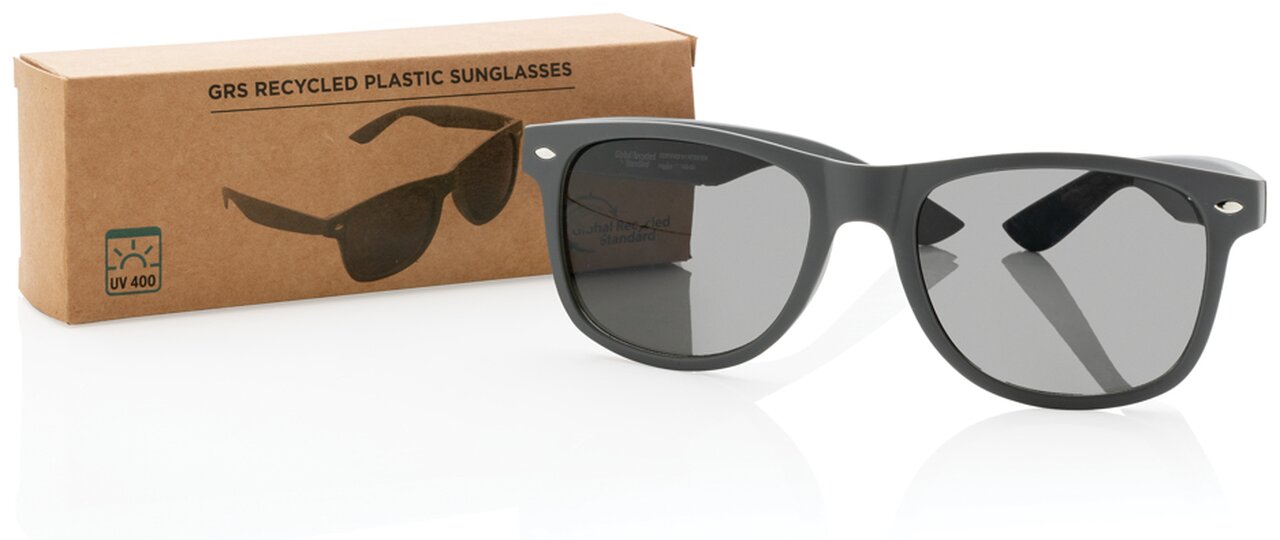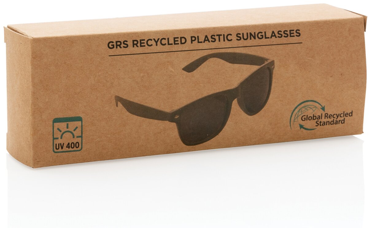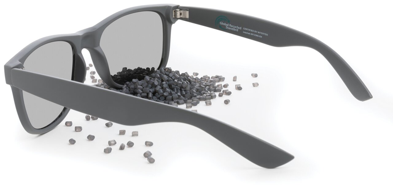Vysoce kvalitní sluneční brýle z GRS certifikovaného recyklovaného plastu. Certifikace zaručuje skutečné obsažení recyklátu. Konstrukce brýlí je ze 100 % recyklovaného PC plastu, zatmavená sklíčka z akrylu odpovídající UV 400 a CAT 3. Podíl použitého recyklovaného materiálu vzhledem k celkové váze produktu: 65 %. Baleno v kraftové dárkové krabičce.