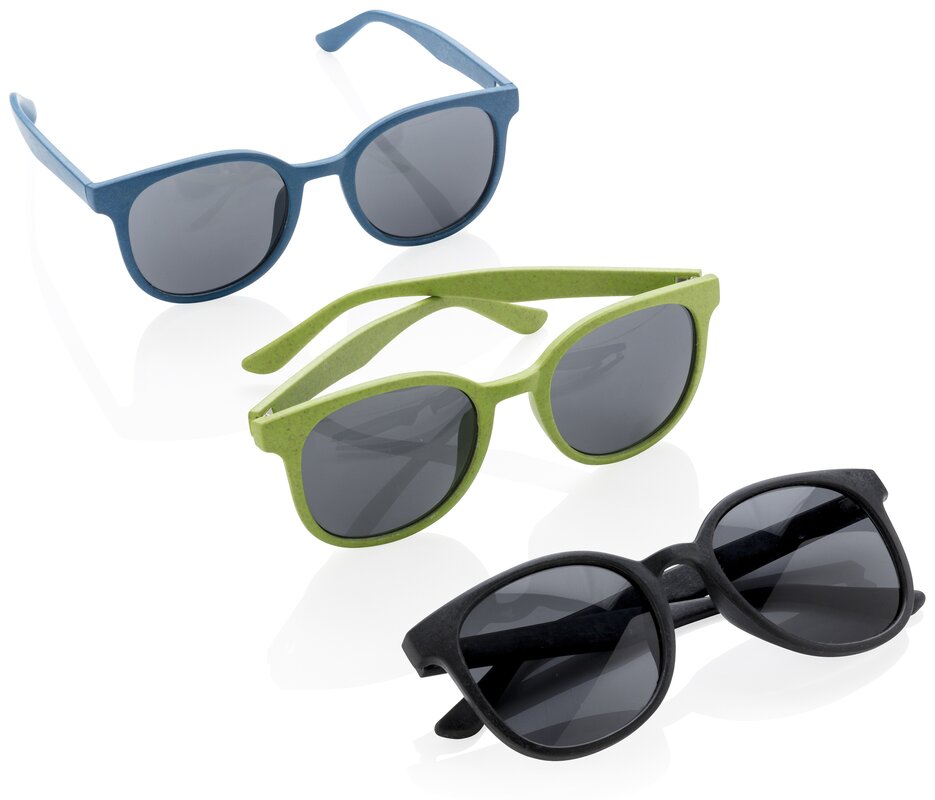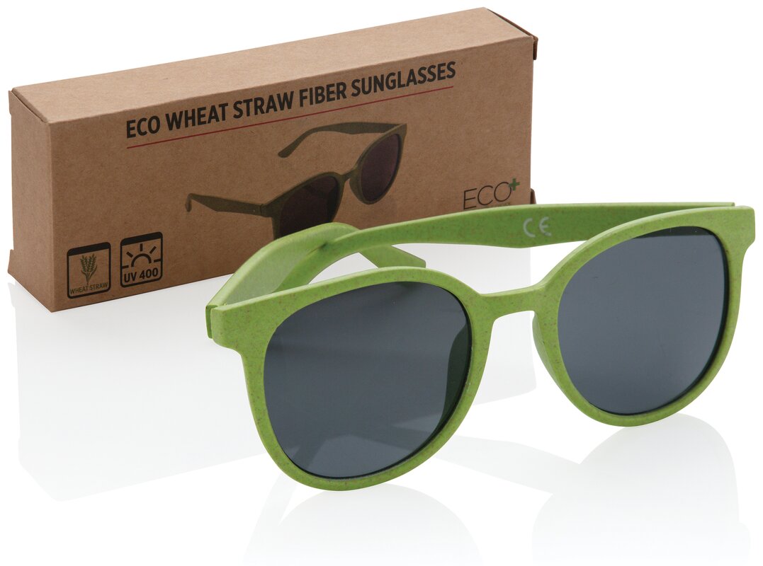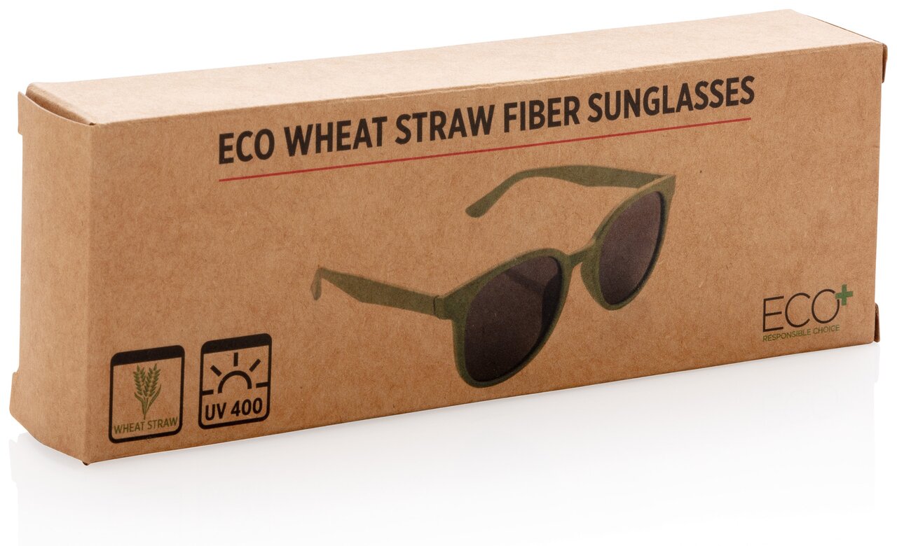 Sluneční brýle s obroučkami a nožičkami vyrobenými z lisované pšeničné slámy. Zabaleno v krabičce z kraftového papíru. Ochrana UV 400.