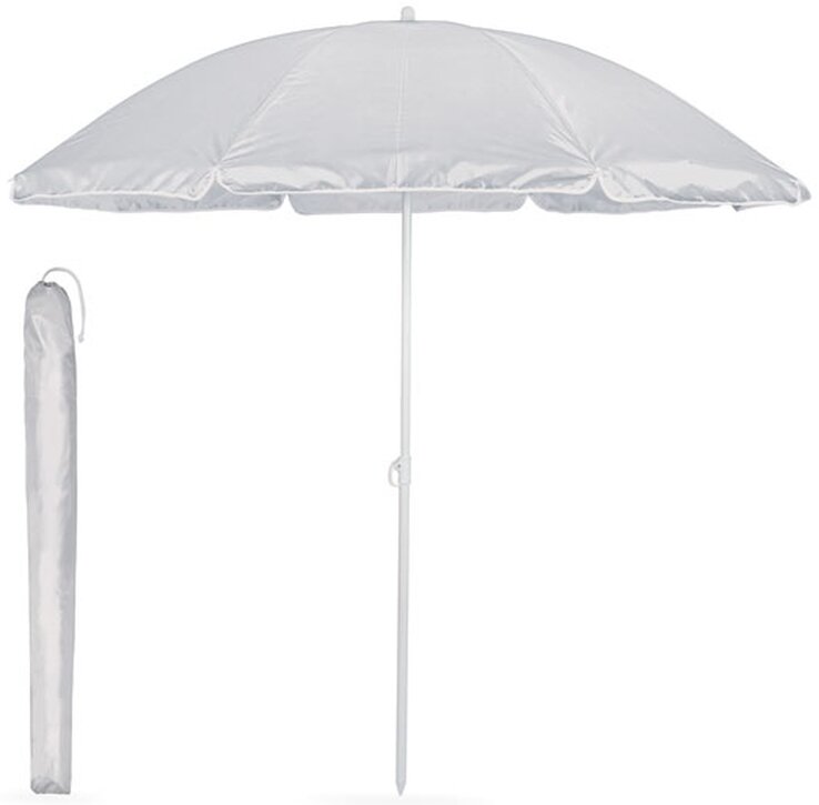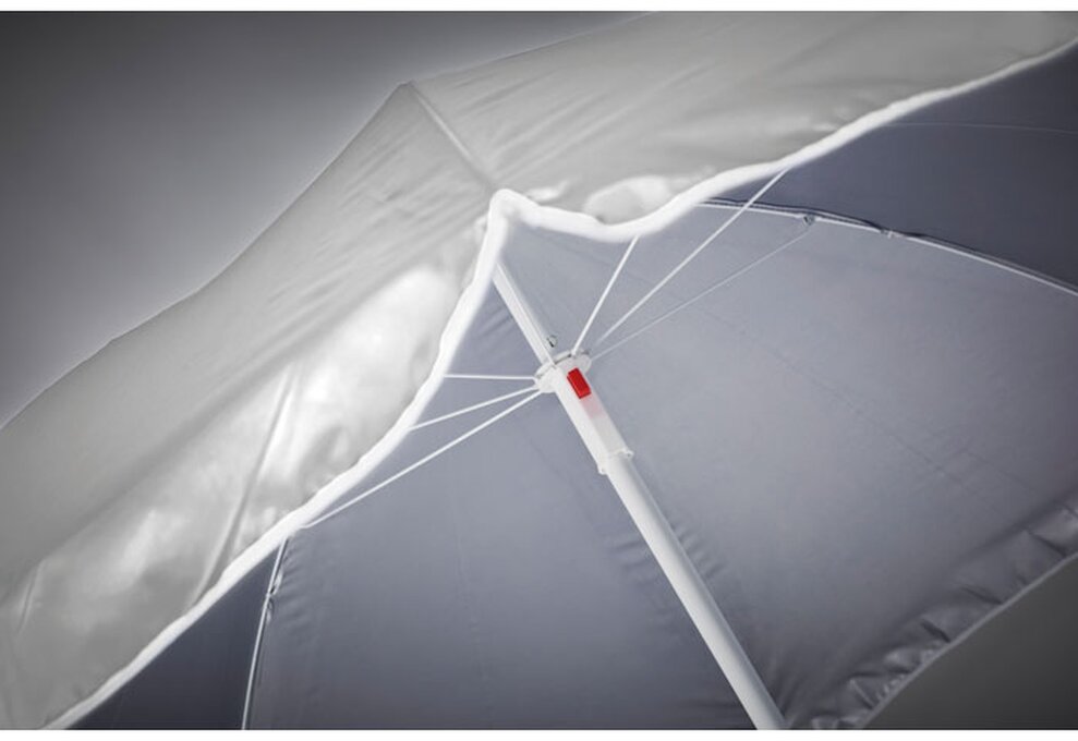Přenosný slunečník/plážový slunečník PARASUN z 210T polyesteru s vnitřní UV vrstvou pro okamžitou ochranu (SPF 30+). Protože i ve stínu se můžete během horkých letních dnů spálit. Tento plážový deštník je lehký a výškově nastavitelný. Po uložení v přiložené přenosné tašce si jej můžete snadno vzít s sebou. Umístěte špičatý konec do půdy nebo písku a jste připraveni vyrazit. Ø 150 cm.