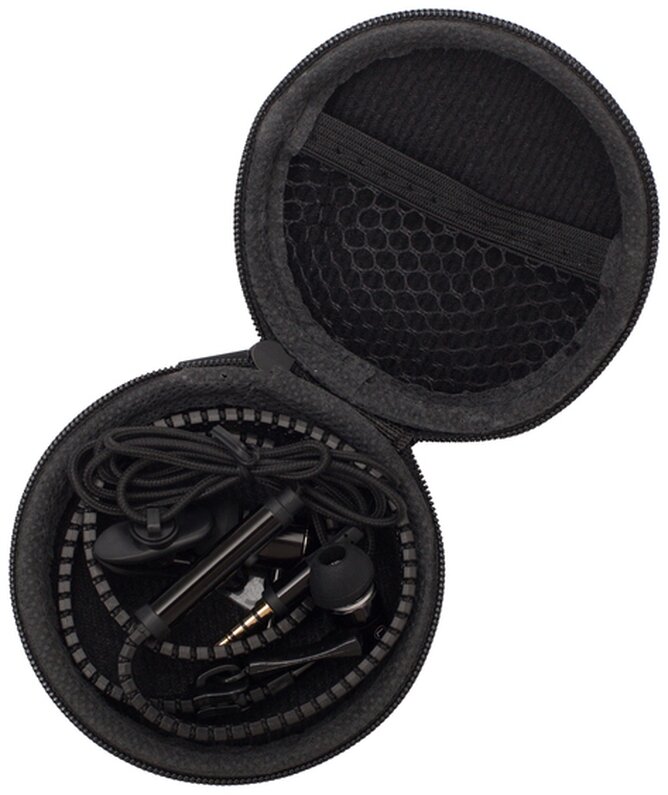 Sluchátka z kovu s mikrofonem a tlačítkem příchozích hovorů. Kabel se zipem s ochranou proti zamotání. Baleno v zesíleném PU pouzdru. Připojení: 3,5 mm jack, průměr: 10 mm, délka kabelu: 1200 mm, frekvenční rozsah: 20 Hz~20 kHZ, hlasitost: 105±3 dB (1KHz, 6 mW), zkreslení: <1%.