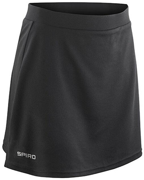 Sportovní vypasovaná sukně s všitými sportovními šortkmi, prodyšná a rychleschnoucí. Sukně má plochý elastický pas, spodní lem s odvětráváním a materál je tkaný s vaflovou strukturou. Sukně má reflexní potisk s logem SPIRO. Lze prát ve 30°.