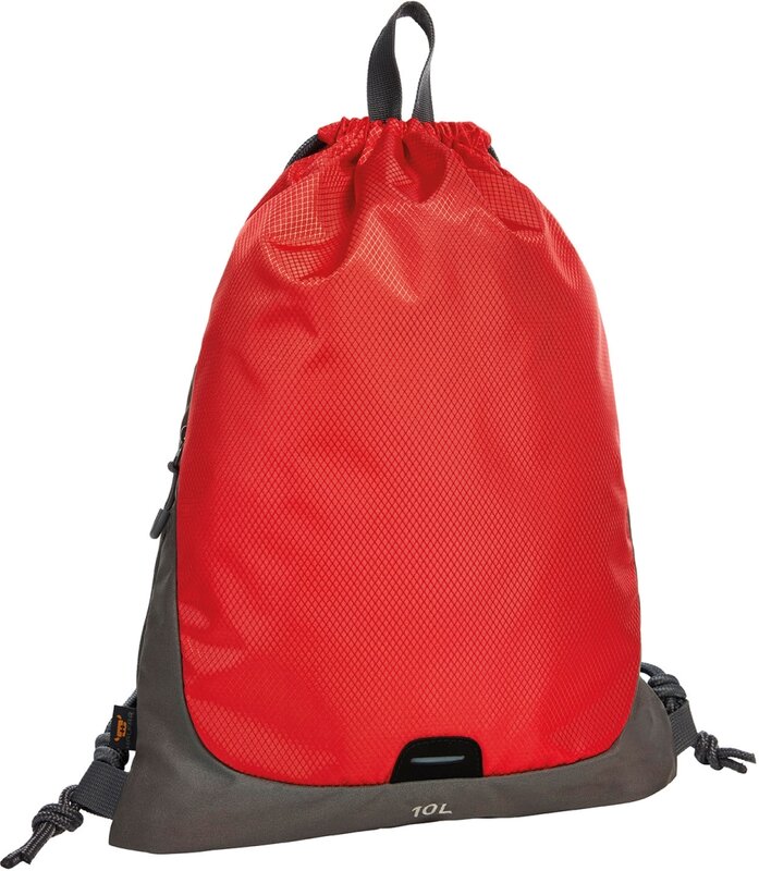 Kvalitní sportovní stahovací vak na záda s velkým hlavním prostorem a boční kapsou na zip.