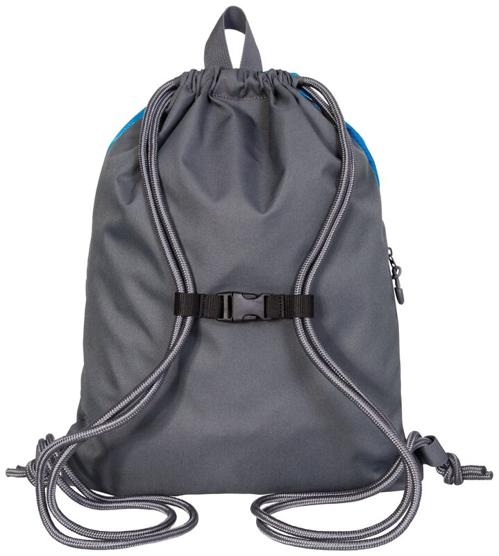 Kvalitní sportovní stahovací vak na záda s velkým hlavním prostorem a boční kapsou na zip.