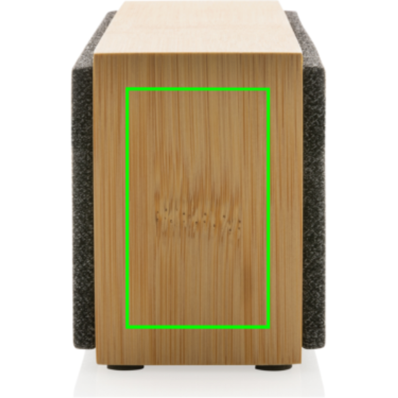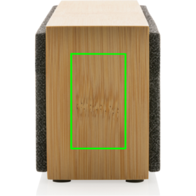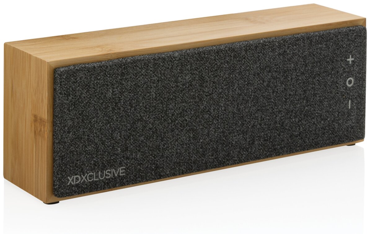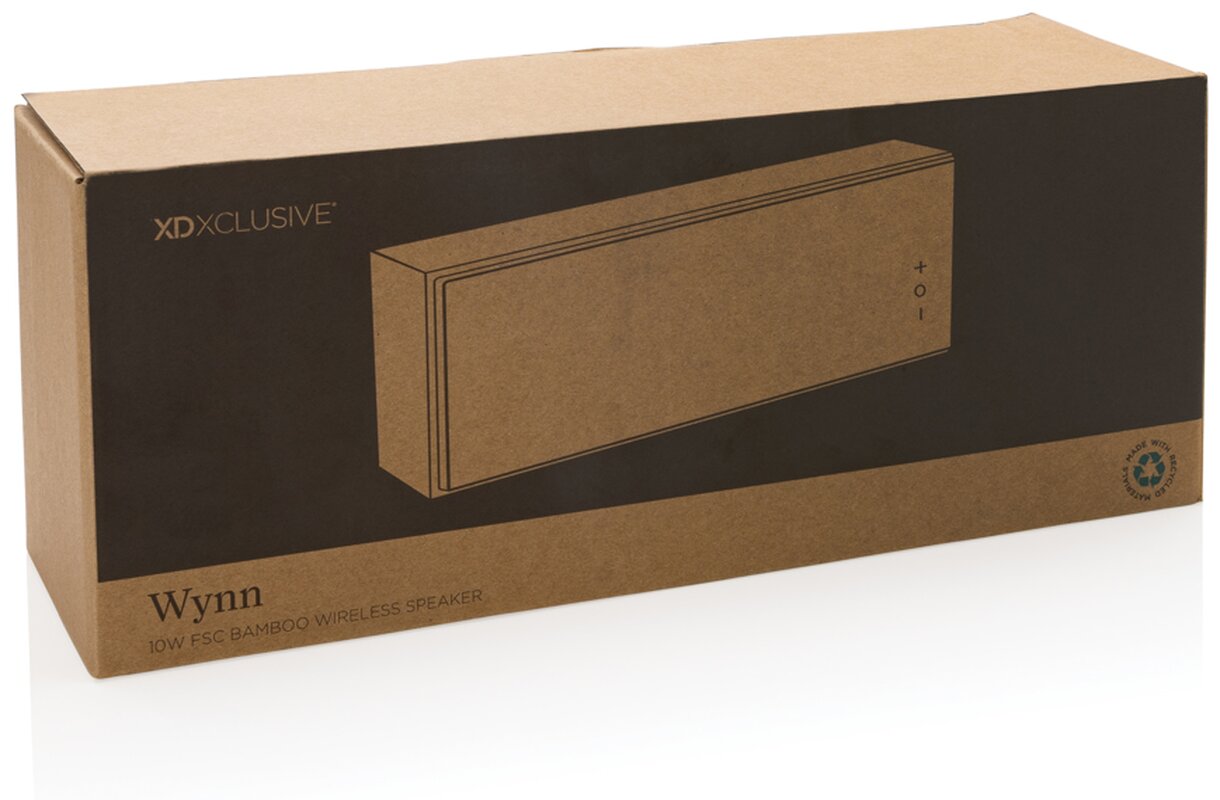 Stylový 10W reproduktor s mimořádně čistým zvukem a výraznými basy. Vnější část je vyrobena ze 100% FSC® certifikovaného bambusu. Plastové části jsou vyrobené z recyklovaného ABS plastu s RCS certifikací. RCS (Recycled Claim Standard) je globální standard, který umožňuje ověřit použití recyklovaného materiálu v produktu napříč celým dodavatelským řetězcem. Celkový podíl recyklátu dle váhy produktu: 23 %. Baterie má kapacitu 2 000 mAh a umožňuje poslech po dobu až 6h na jediné nabití. Plné nabití trvá pouze 2h. BT 5.1 pro hladké bezdrátové připojení na vzdálenost až 10m. Zabudovaný mikrofon pro možnost telefonování. Včetně nabíjecího kabelu z recyklovaného TPE. Baleno v FSC® dárkové krabičce.