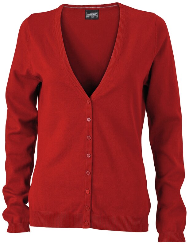Klasický dámský svetr/cardigan James & Nicholson se zapínáním na knoflíčky a výstřihem do V. Svetr má zúžený střih. Vnější materiál: 100% česaná bavlna - lehká pletenina. Lze prát v pračce. Gramáž je 260 g/m². Balení: 1/30 (ks v jednom sáčku / celkem ks v kartonu).