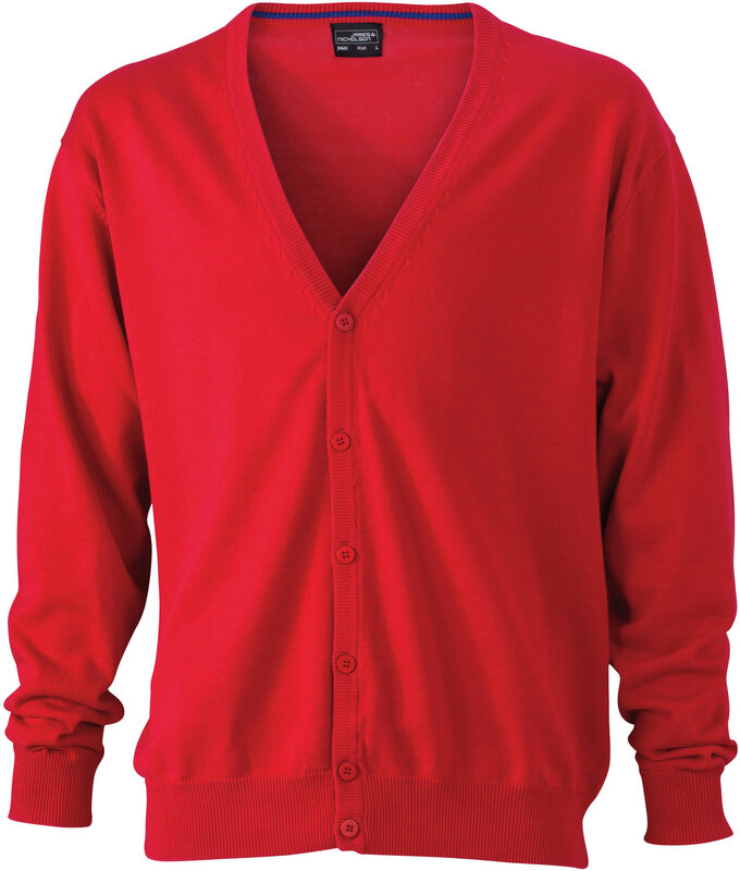 Pánský svetr - cardigan James & Nicholson. Klasický bavlněný svetr. Vnější materiál: 100% česaná bavlna - lehká pletenina. Cardigan má výstřih do V. Lze prát v pračce. Gramáž je 260 g/m². Balení: 1/30 (ks v jednom sáčku / celkem ks v kartonu).
