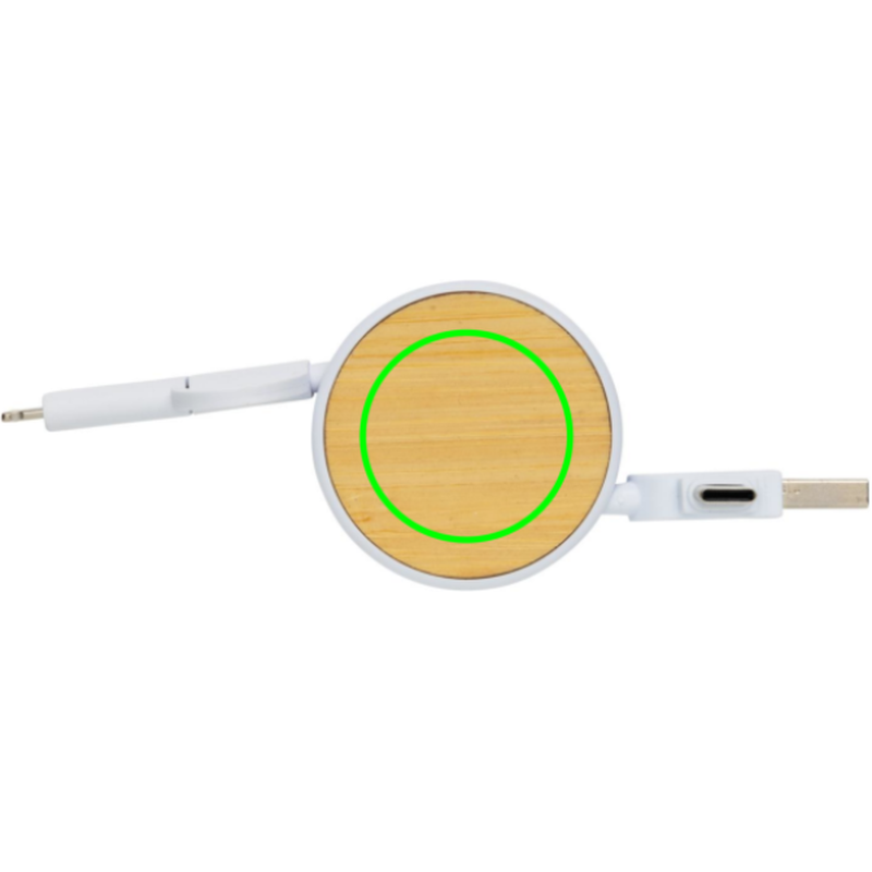 Svinovací univerzální nabíjecí kabel s 5 konektory: USB C/USB A vstup, USB C/micro USB/iOS výstup. USB C je vhodné pro nabíjení moderních telefonů, ale i MacBooků. USB A má dvojí funkci (vstup i výstup) pro nabíjení jakéhokoliv zařízení z jakéhokoliv jiného zdroje. Pouzdro je vyrobeno z FSC certifikovaného bambusu a RCS certifikovaného ABS. Kabely vyrobeny z RCS certifikovaného TPE. Maximální délka: 100 cm. Celkový podíl recyklátu dle váhy produktu: 63 %. Baleno v dárkovém obalu z FSC kraftového papíru. Produkt je vyroben bez PVC.