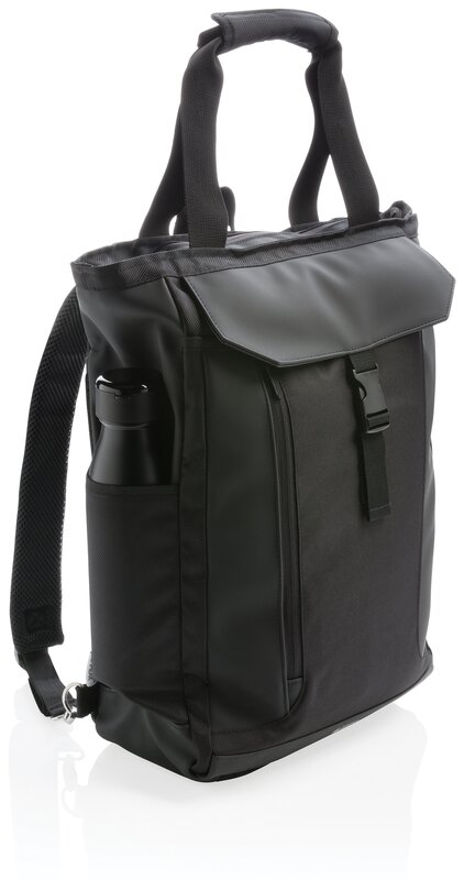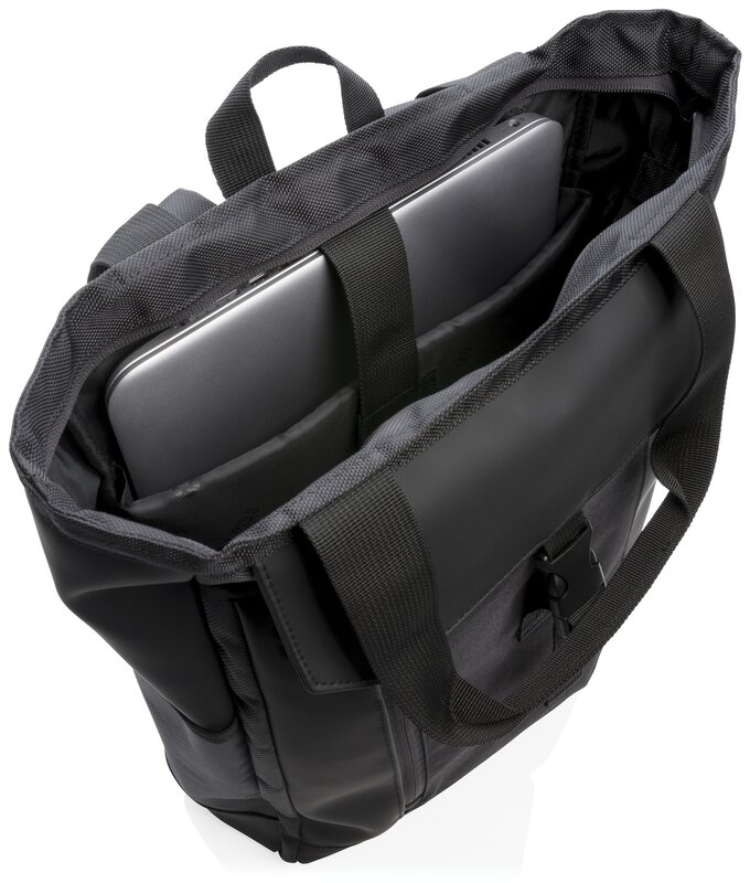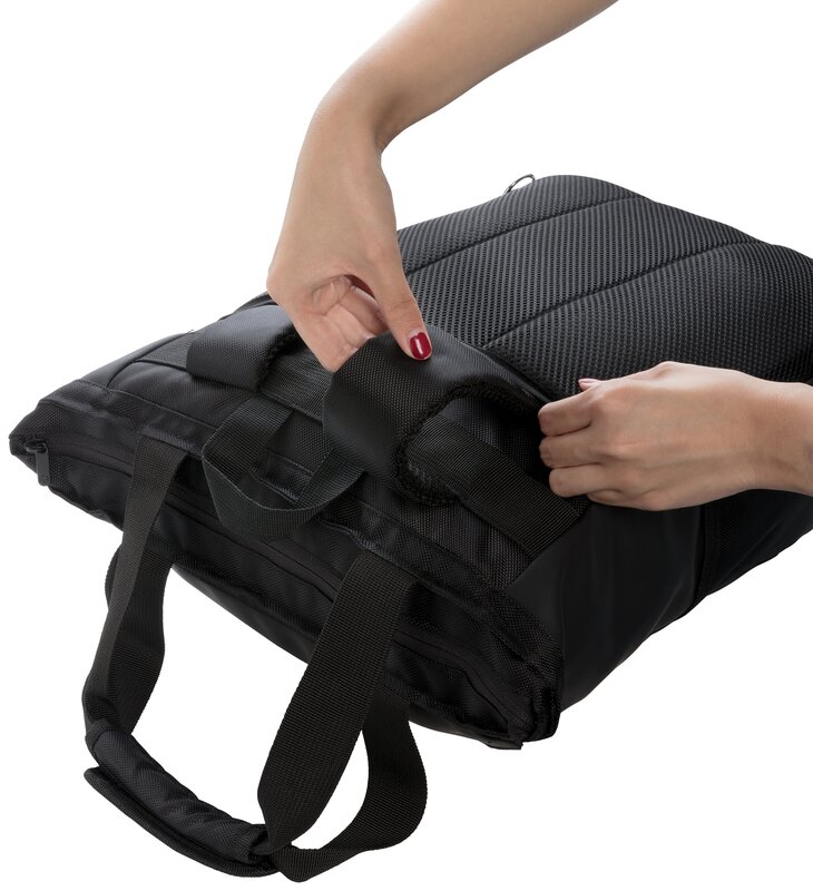 Všestranný batoh, který můžete nosit na zádech, na ramenu či obyčejně v ruce. Polstrovaný oddíl na 15" notebook, kapsy s RFID ochranou. PVC free