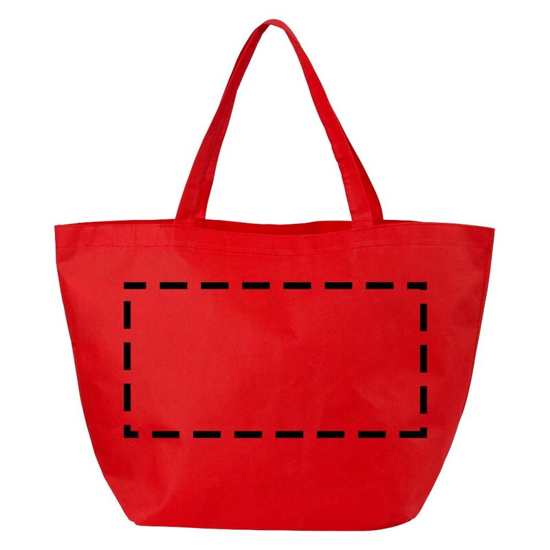 Výborná alternativa k plastovým taškám. Otevřený hlavní prostor. Výška popruhů 25,4 cm. Taška je recyklovatelná. Netkaný polypropylen, 80 g/m².