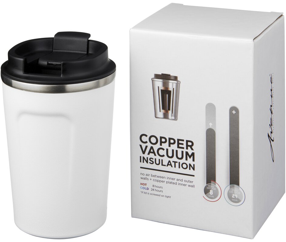 Měděný termohrnek z nerezové oceli má uzávěr odolný proti rozlití, konstrukce je s vakuovanou dvojitou stěnou z nerezové oceli s měděnou izolací, díky které zůstanou nápoje chladné po dobu 24 hodin nebo horké po dobu nejméně 8 hodin. Povrchová úprava je práškově lakovaná proti vyšší odolnosti.