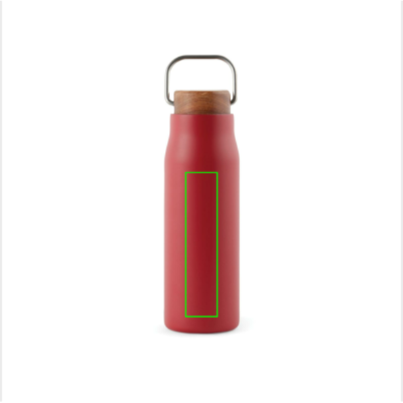 Elegantní termo lahev Ciro s uzávěrem z akáciového dřeva s kovovým poutkem pro snadný přenos.