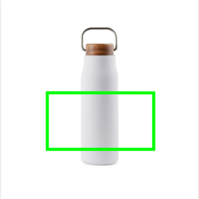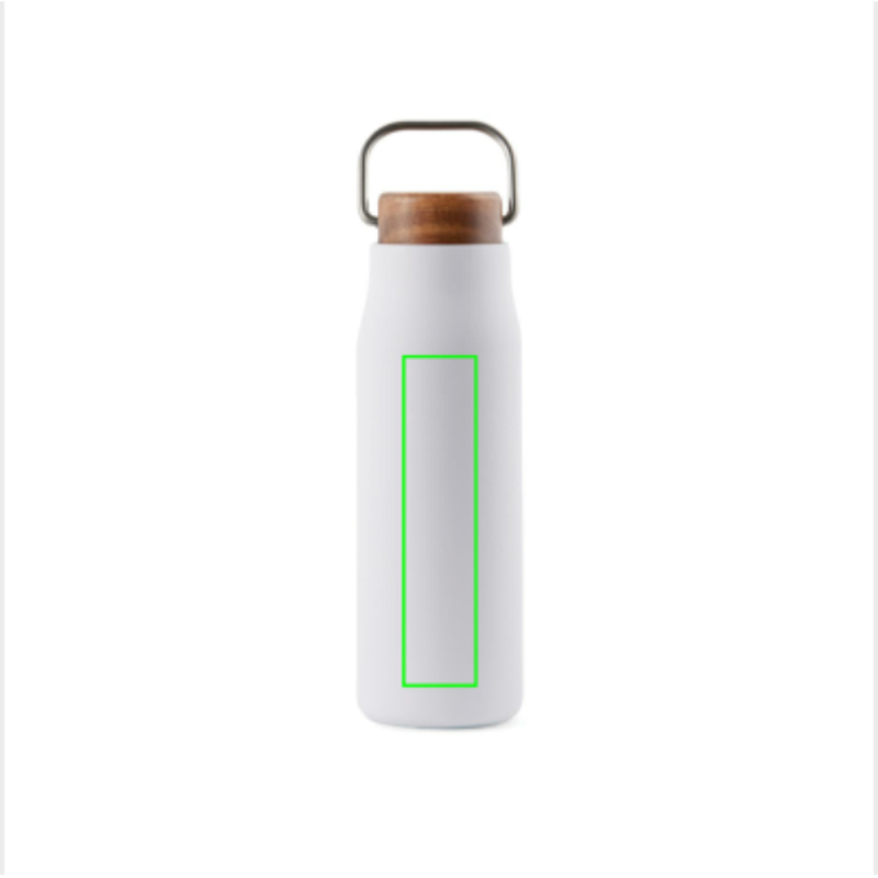 Elegantní termo lahev Ciro s uzávěrem z akáciového dřeva s kovovým poutkem pro snadný přenos.