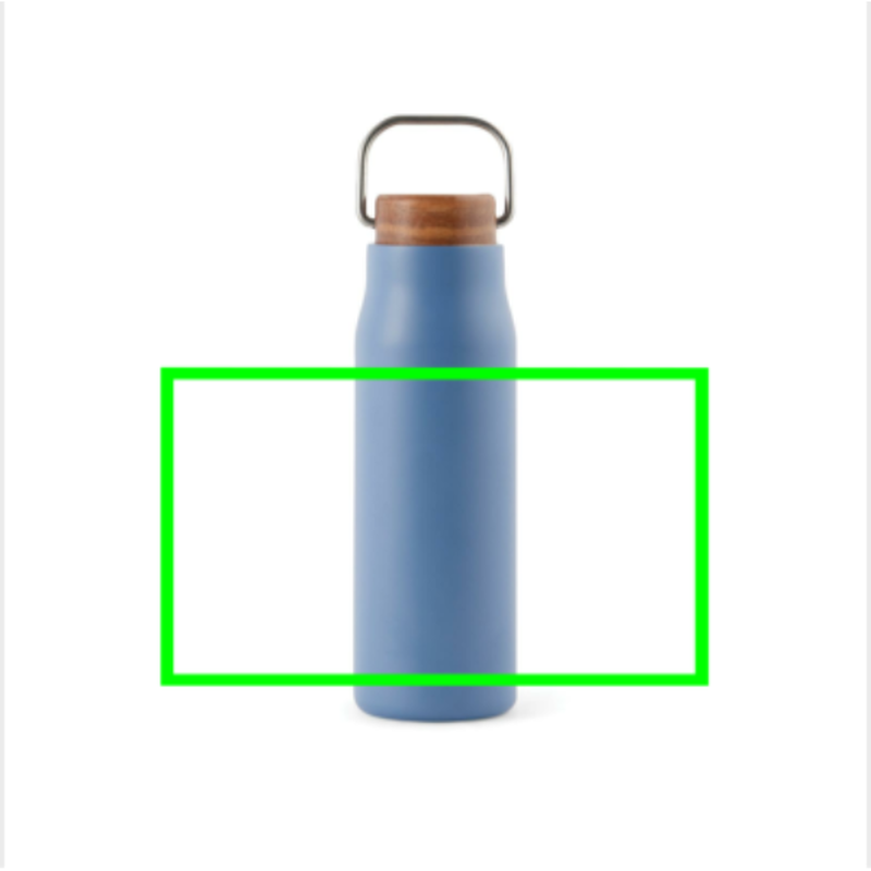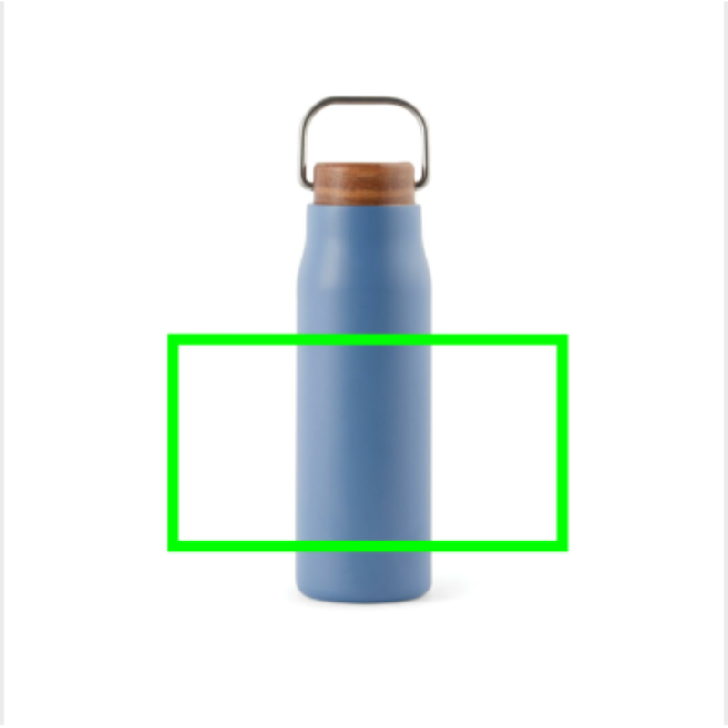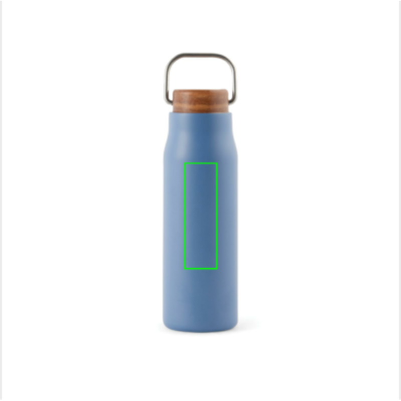 Elegantní termo lahev Ciro s uzávěrem z akáciového dřeva s kovovým poutkem pro snadný přenos.